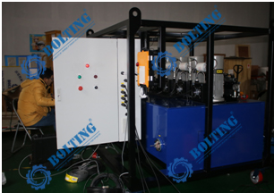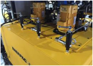 (1) 液壓動力單元配置兩臺 其他品牌 高 效 ZE 系列電動泵供油,正常情況下一臺電動泵為兩個(gè)液壓油缸供油; (2) 同時(shí)可以通過外部管路連接后用其中一臺電動泵為四個(gè)液壓油缸供油; (3) 高頻電磁換向閥用于頂升/縮回控制; (4) 一個(gè) 800L 可用液壓油容量的油箱為系統(tǒng)的應(yīng)用和循環(huán)冷卻提供充足的油量; (5) 配置液壓油冷卻器可以及時(shí)冷卻液壓油,防止工作過程中液壓油溫度上升過快; |