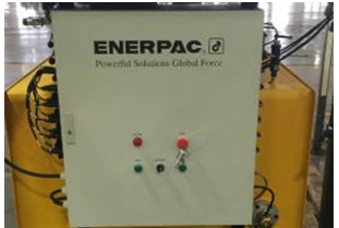 (1) 10” LCD 觸摸屏的人機(jī)界面; (2) 允許用戶輸入所需參數(shù)為提升操作做準(zhǔn)備; (3) 實(shí)時(shí)顯示包括位移和液壓工作壓力的頂升操作狀態(tài); (4) 壓力檢測功能可防止在頂升時(shí)油缸或位移傳感器失效引起不希望發(fā)生的事情; (5) 為保護(hù) PLC 和便于移動,PLC 控制臺安裝在一個(gè)鋼制支架上; (6) 除了可以在主控制臺操作外,也可以通過 HBC 無線控制器進(jìn)行遠(yuǎn)程操作,便于近距離觀察負(fù)載頂升過程和油缸狀態(tài); |