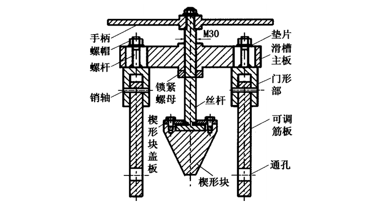 法蘭撐開程度。依據(jù)法蘭類型,設(shè)計了兩種不同錐度的楔形塊以供選用。